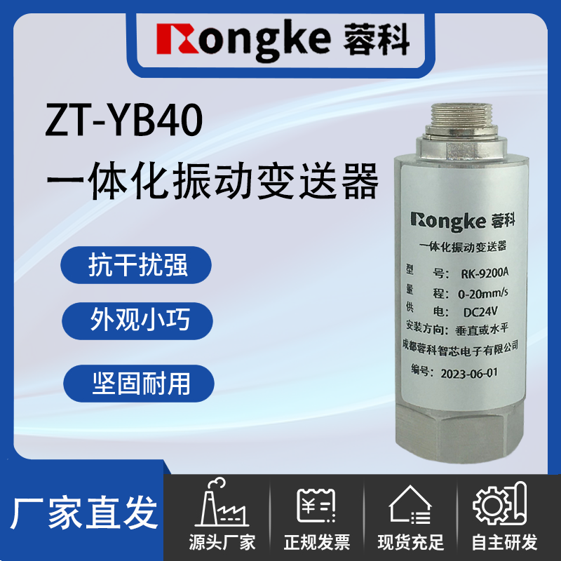 一体化振动变送器:将磁电式振动传感器、精密测量电路集成在一起,构成高精度振动测量系统,该变送器可直接连接DCS、PLC或其它设备,是测量风机、电动机、水泵等工厂设备振动的理想选择。