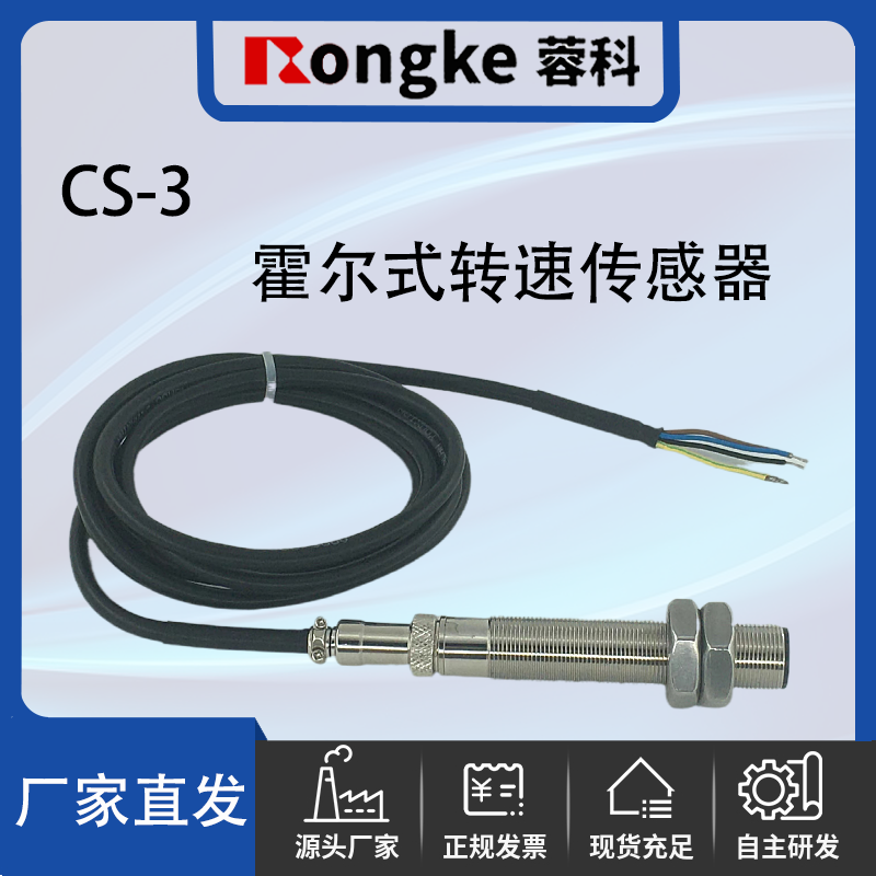 霍尔转速传感器探头由磁敏电阻作感应元件,是一种新型的转速传感器。当被测体上带有凸起(或凹陷)的磁性或导磁材料,随着被测物体转动时,传感器输出与旋转频率相关的脉冲信号,达到测速或位移检测的发讯目的。