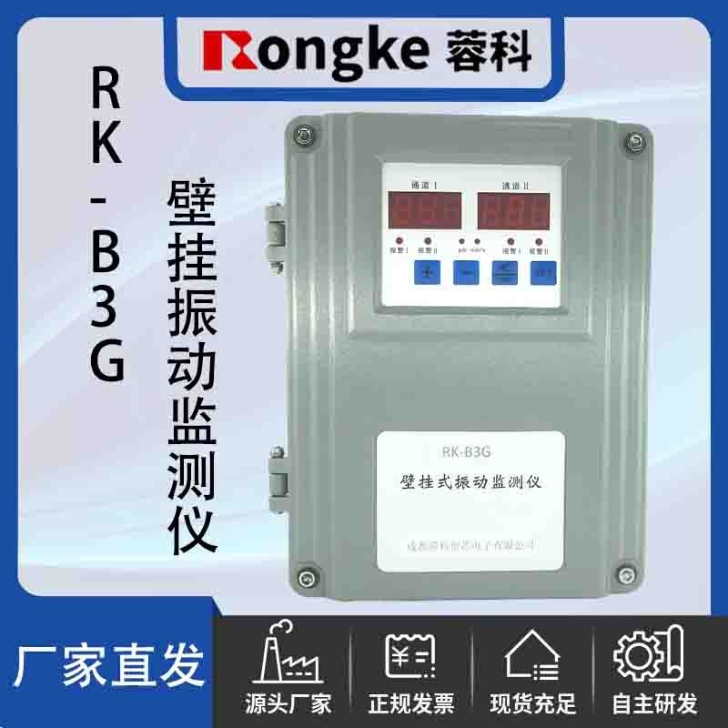 RK-B3G壁挂振动监测仪:振动监测保护仪主要用于对转速600~60000转/分旋转机械的振动烈度进行长期监测,与磁电式振动速度传感器配套,可以监测旋转机械的垂直、水平方向的振动,振动烈度值大小由仪器前面板的表头显示,同时具有标准的电流输出,可与各种DCS、PLC系统配接,当振动值超,本仪器可外接声光报警器以提示现场操作人员采取防范措施,并有报警、危险开关量输出,保护机器安全可靠运行。