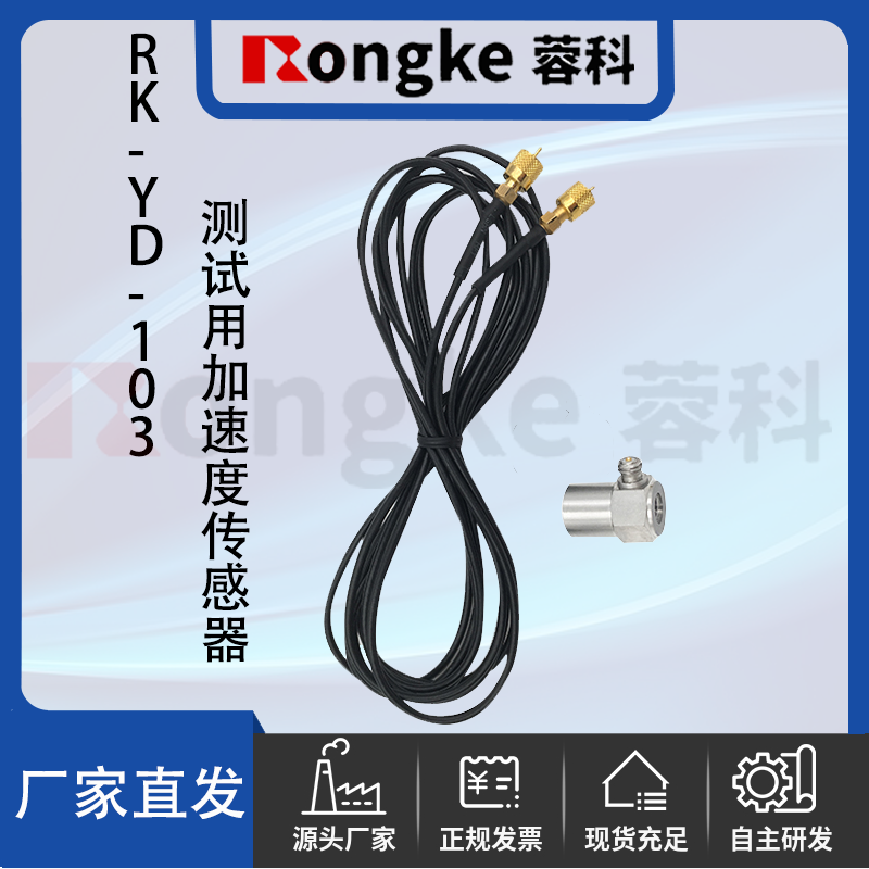 RK-YD-103加速度传感器 特点:●通用振动测试●体积小、频响宽●侧端输出20pC/g,0.5-12kHz...